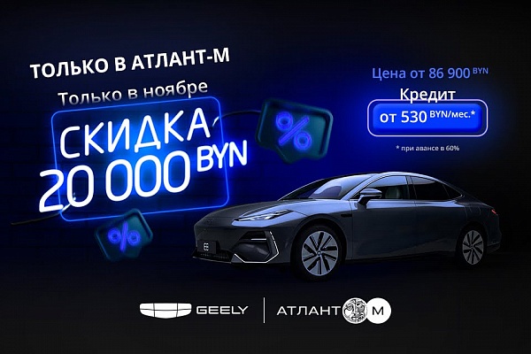 Только в ноябре! Скидка 20 000 BYN на новый Geely E8 в Атлант-М!