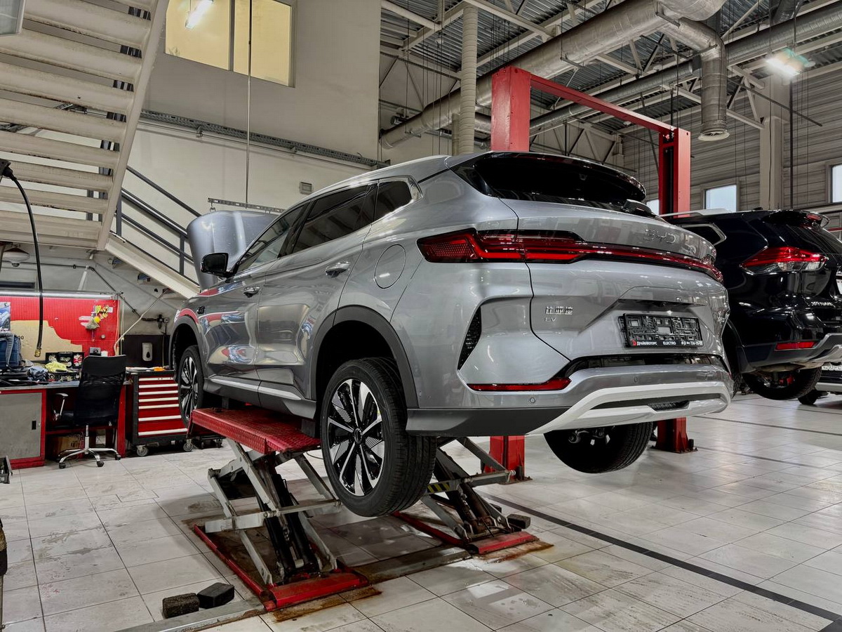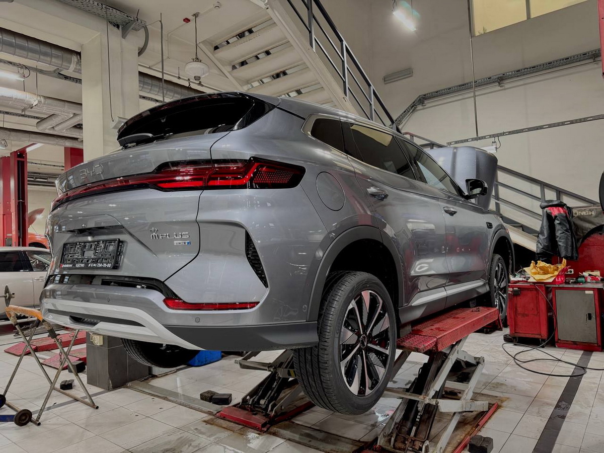 В случае необходимости сделают ремонт тормозной системы, шиномонтаж, замену стёкол, комплексную проверку состояния подвески и оклейку антигравийными плёнками автомобилей BYD.