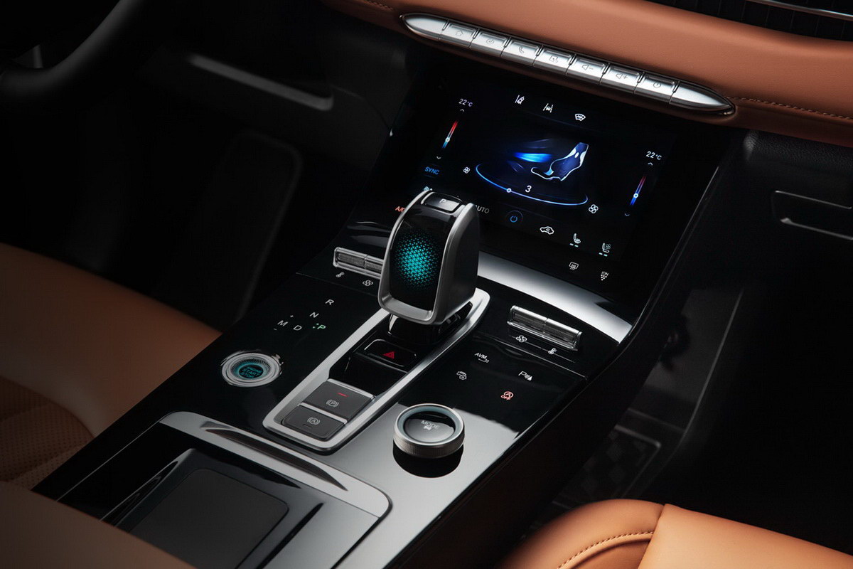 Двигатель скомпонован с 7-ступенчатой преселективной роботизированной коробкой передач 7DCT и системой полного привода AWD разработки BorgWarner с электромагнитной многодисковой муфтой. По умолчанию крутящий момент подается на переднюю ось. Также предусмотрены шесть режимов движения по различным типам дорог и покрытия.