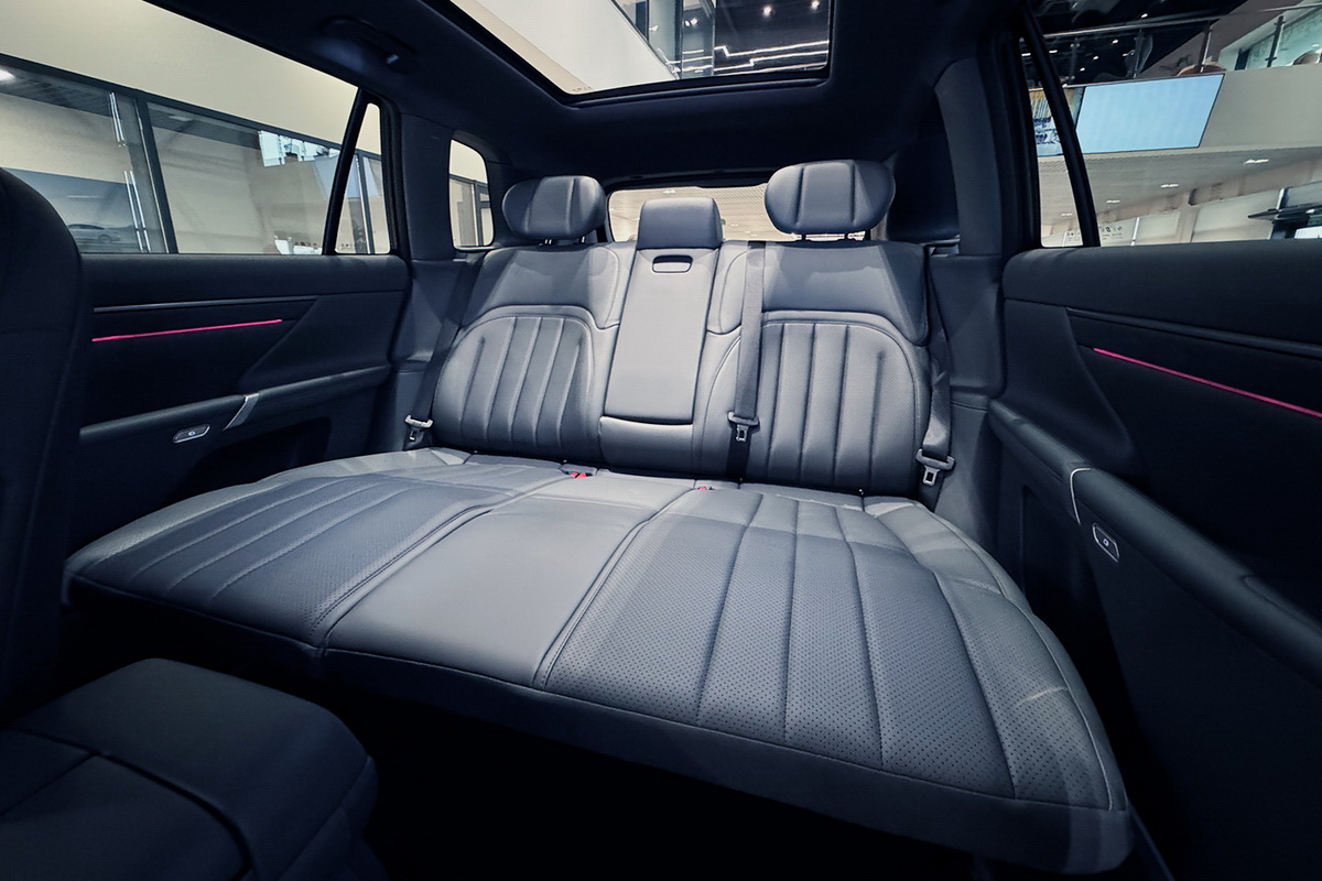 В шестиместной версии отдельные капитанские сиденья второго ряда имеют режим релакса, а широкий проход между подлокотниками в 180 мм позволяет удобно пройти на третий ряд. Сиденье Queen’s Seat шестиместной версии, предназначенное для правого пассажира второго ряда, оснащено оттоманкой, эффектом Zero Gravity, 10-точечным массажем и 3-уровневой вентиляцией.
