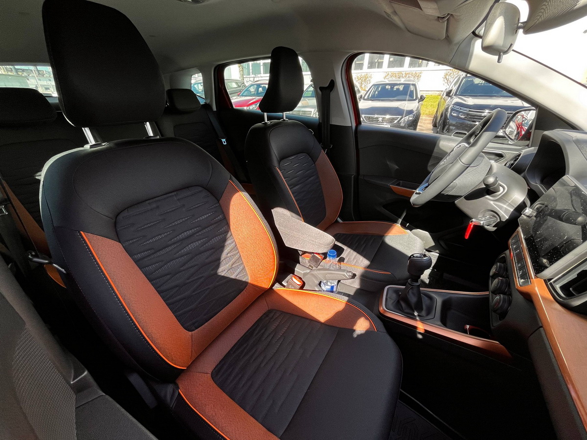 Материалы отделки салона соответствуют бюджетному сегменту. Версия Cross получила оранжевые вставки на сиденьях и панели приборов, подчеркивающие индивидуальность автомобиля. Рулевая колонка регулируется по высоте и вылету, подогрев и кожаная оплетка руля доступны только в топовой комплектации Techno.