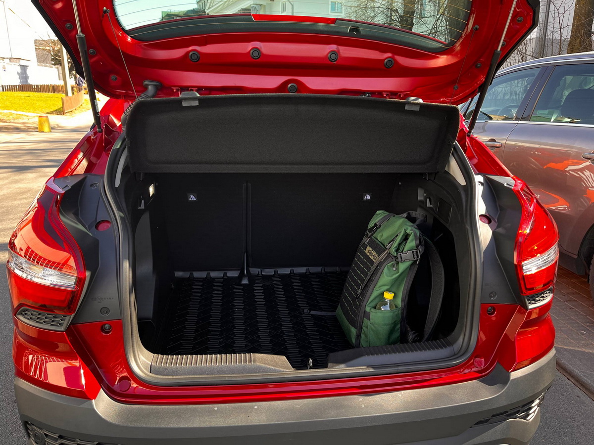 Паспортный объем багажника универсала составляет 480 литров у версии Cross против 500 у седана. Впрочем, в реальности багажное отделение универсала глубокое и имеет правильную прямоугольную форму без выпирающих арок и мешающих петель. При сложенных задних сиденьях доступно 1965 литров, однако ровный пол при этом отсутствует – образуется заметная ступенька. Полезная особенность – двойной пол багажника с ворсовым покрытием с одной стороны и резиновым с другой. Это практичное решение для перевозки грузов различного типа.